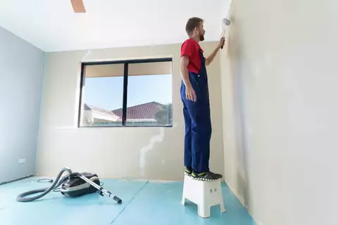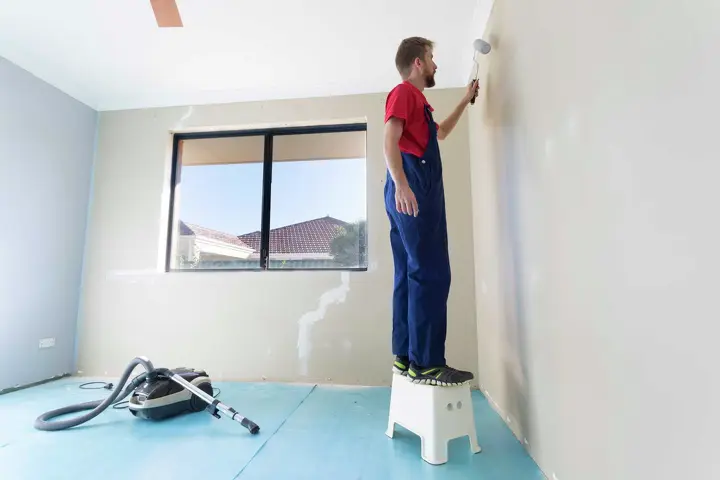 - Clean the primer from the paintbrush, paint pan or pail. Refill the container with paint. Insert a new roller cover on the roller handle. Use the angled paintbrush to apply a smooth line of paint to the perimeters of walls and ceilings. Apply paint to small areas where a roller will not fit. Use the roller to apply a coat of paint to the larger areas. Roll over the brushed cut line to texture and blend the marks left by the paintbrush. Work in sections that are covered by one load of the roller, but do not attempt to stretch the paint too far. Allow the paint to dry for the amount of time recommended by the manufacturer. Apply a second coat of paint and allow it to dry completely.