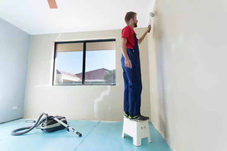 - Cover the floor with drop cloths. If the item to be painted is small, place it on the drop cloth. If you are painting ceilings or walls, move the furniture to the center of the room. For exterior work, cover the sidewalks, decks, bushes and everything else that you do not want to be spattered with paint.